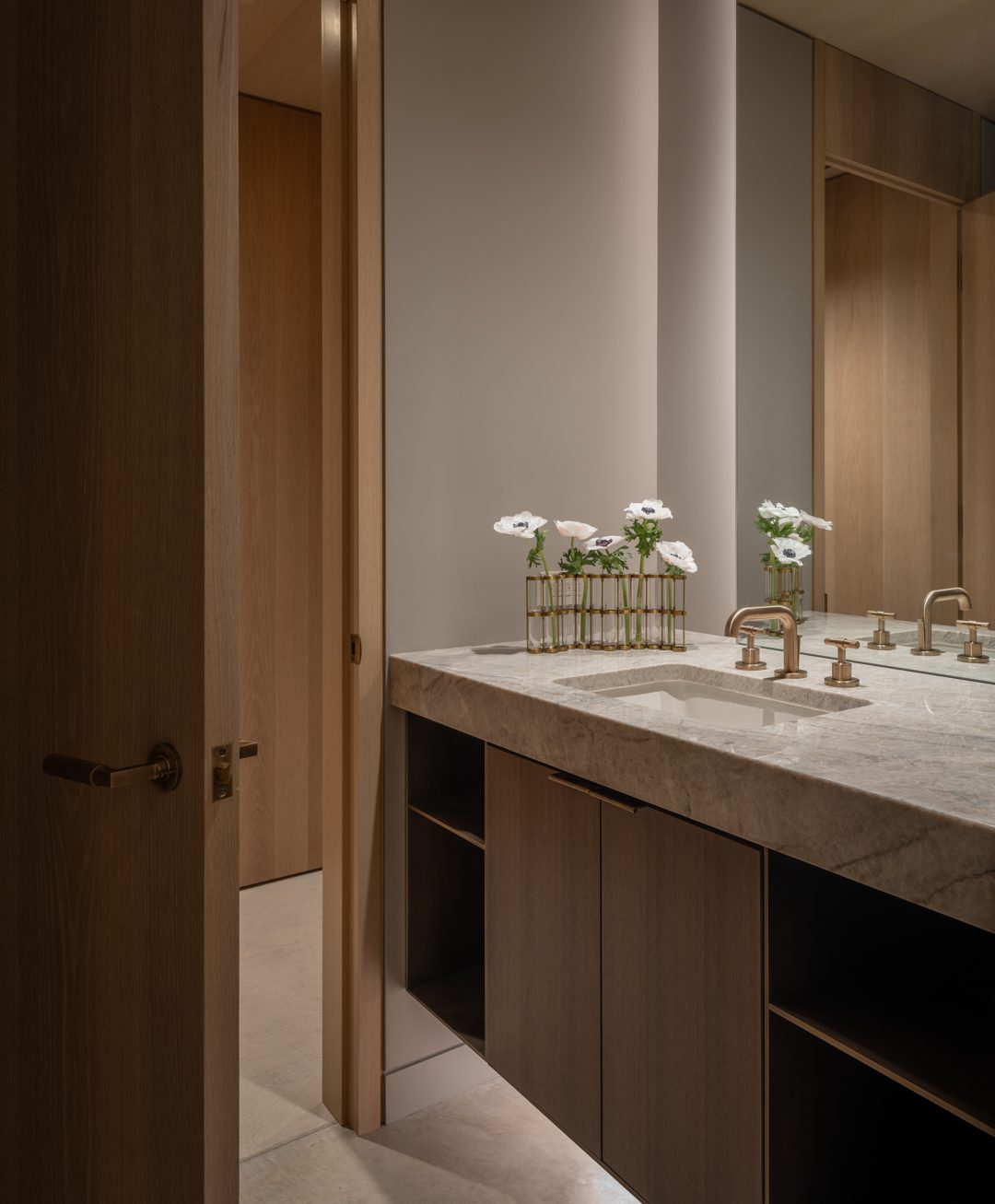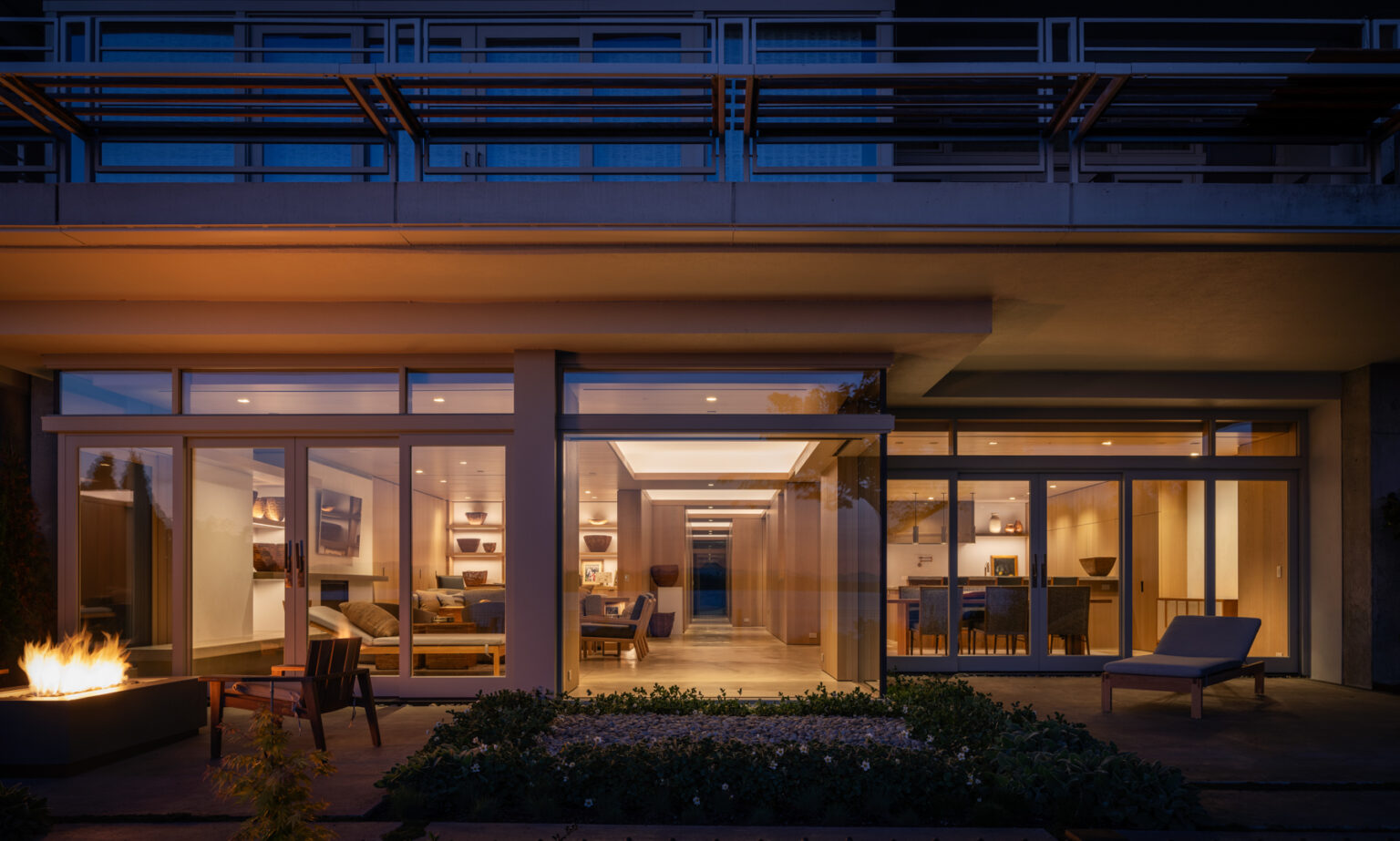 We collaborated with architect Jim Olson and Olson Kundig on a front-to-back condo that takes full advantage of its ground-level location by visually extending into the landscape at both ends of the unit.